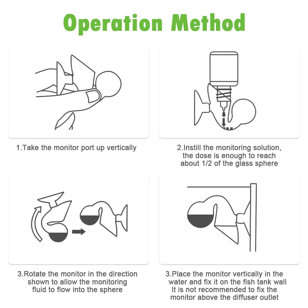 Accurate CO2 Monitoring: Three-color indicator fluid (Blue: low, Green: normal, Yellow: high) clearly shows CO2 concentration in your aquarium.
