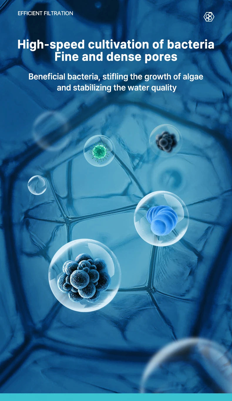 6-in-1 multi-function design: filtration, oxygenation, wave making, water pumping, waste suction, and poop separation.