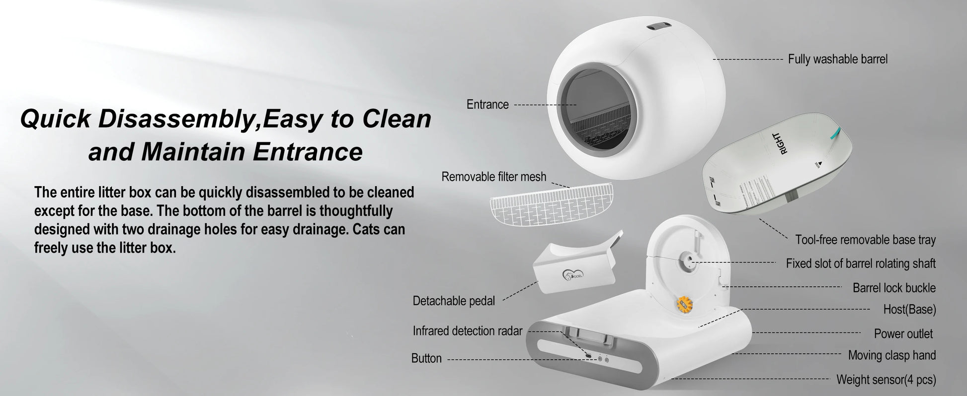 Automatic Self-Cleaning: After your cat leaves, the system separates waste into a sealed bin, helping maintain freshness and reducing daily scooping.